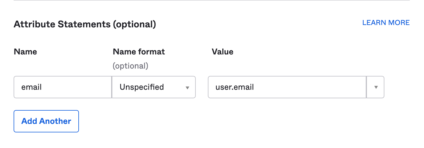 On this same page, you will scroll down until you see the Attribute Statements section. Then you'll add the email attribute just like the image below and then you can hit Next.